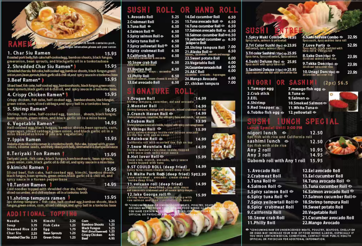 Menu *Price subject to change according to seasonality and availability. Contact Us Mon - Thur 11:00 AM - 9:00 PM Fri - Sat 11:00 AM - 9:30 PM Sun 11:30 AM - 9:00 PM (320) 423-4783 601 2nd Street South, Waite Park, MN 56387 Facebook Google Maps Yelp